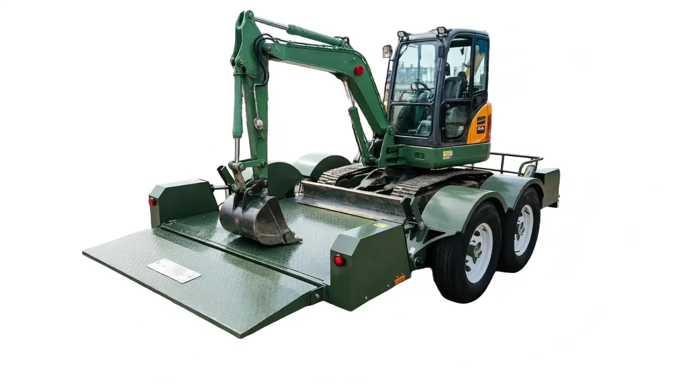 Prevoz gradbenih strojev: Primeren za prevoz mini bagrov, mini nakladalcev (Bobcats) ali majhnih cestnih valjarjev.