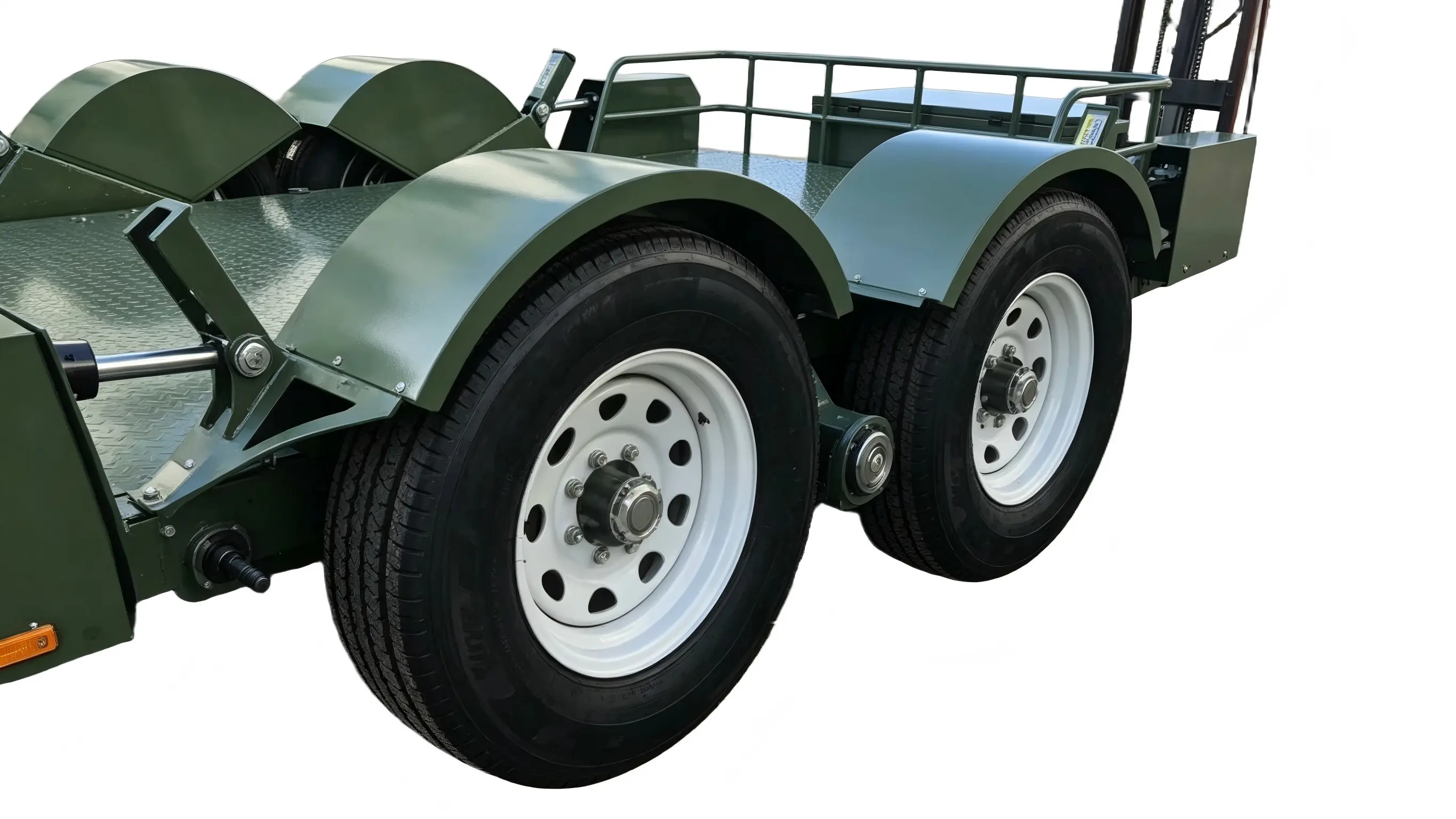 Ta prikolica z dvoosno simetrično postavitvijo z osmi za težke obremenitve zagotavlja enakomerno porazdelitev tovora. Njegova zmogljivost močno presega zmogljivost podobnih enoosnih modelov, saj ne kaže nobenih večjih deformacij niti pri polni obremenitvi 5 ton. Opremljen je z vzmetenjem z listnatimi vzmetmi in širokimi pnevmatikami ter ponuja odlično blaženje udarcev – zagotavlja stabilno vožnjo pri visoki hitrosti brez nihanja ali udarcev, hkrati pa zlahka obvladuje neravni teren in gradbišča.